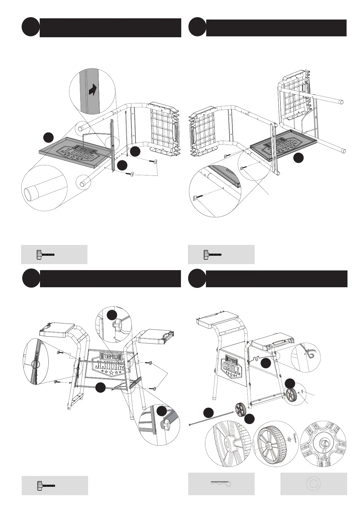 Note: Leave hardware loose until grill body assembly in step 9. Note: Leave hardware loose until grill body assembly in step 9.