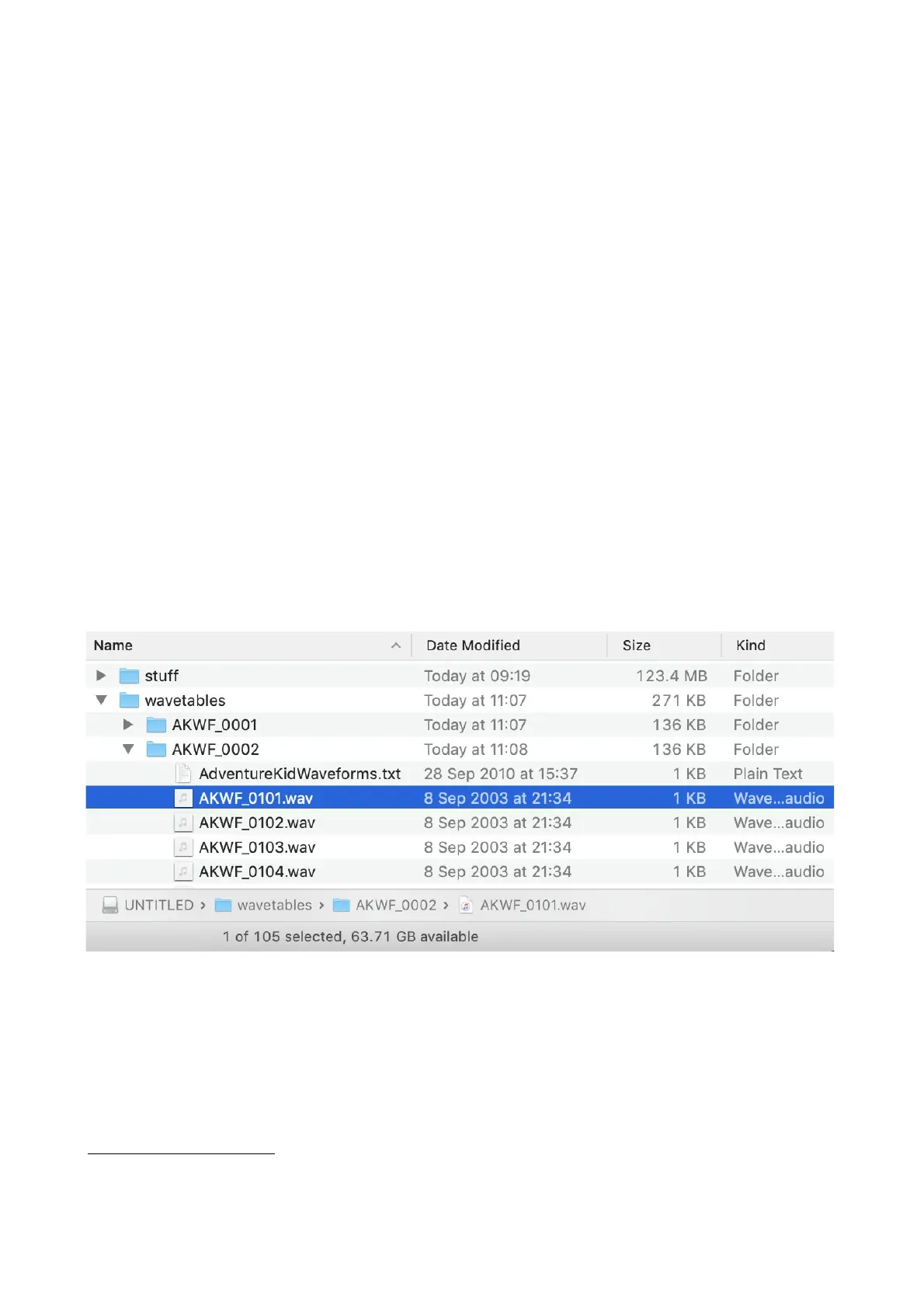 600). There are no settings that apply to wavetable folders, nor to the individual files inside the