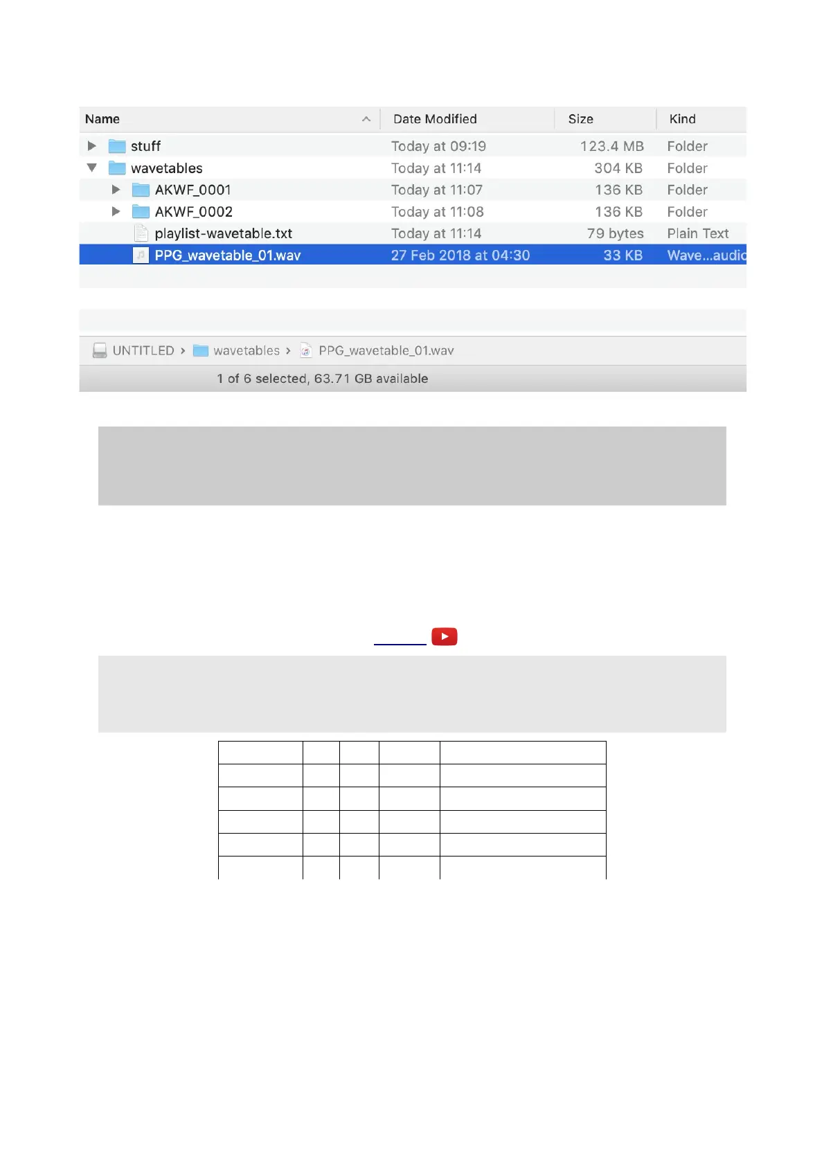 See 'Loading wavetables' above for a description of how to load wavetables onto the SD card.