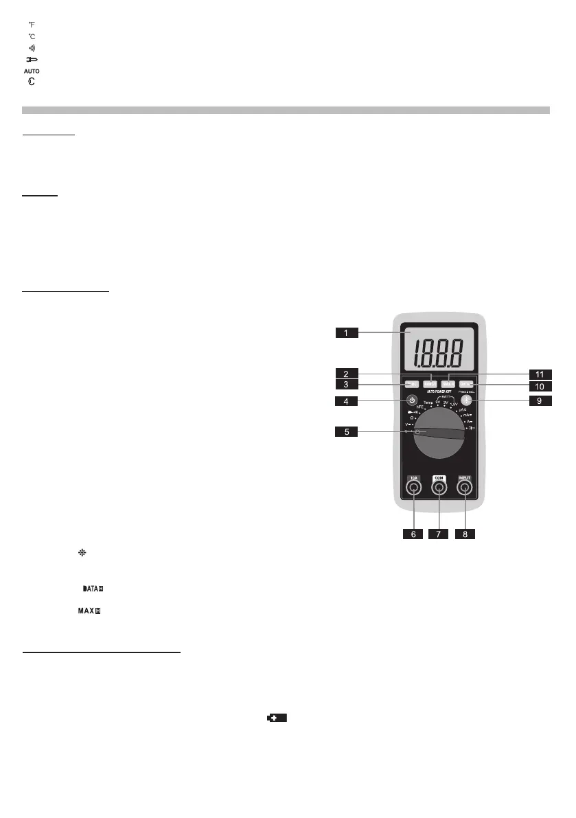 Jsouvybavenyindikacípolarity,funkcíuchováníúdajů,režimemMAX(uloženímaxima),indikacípřekročenírozsahuafunkcí