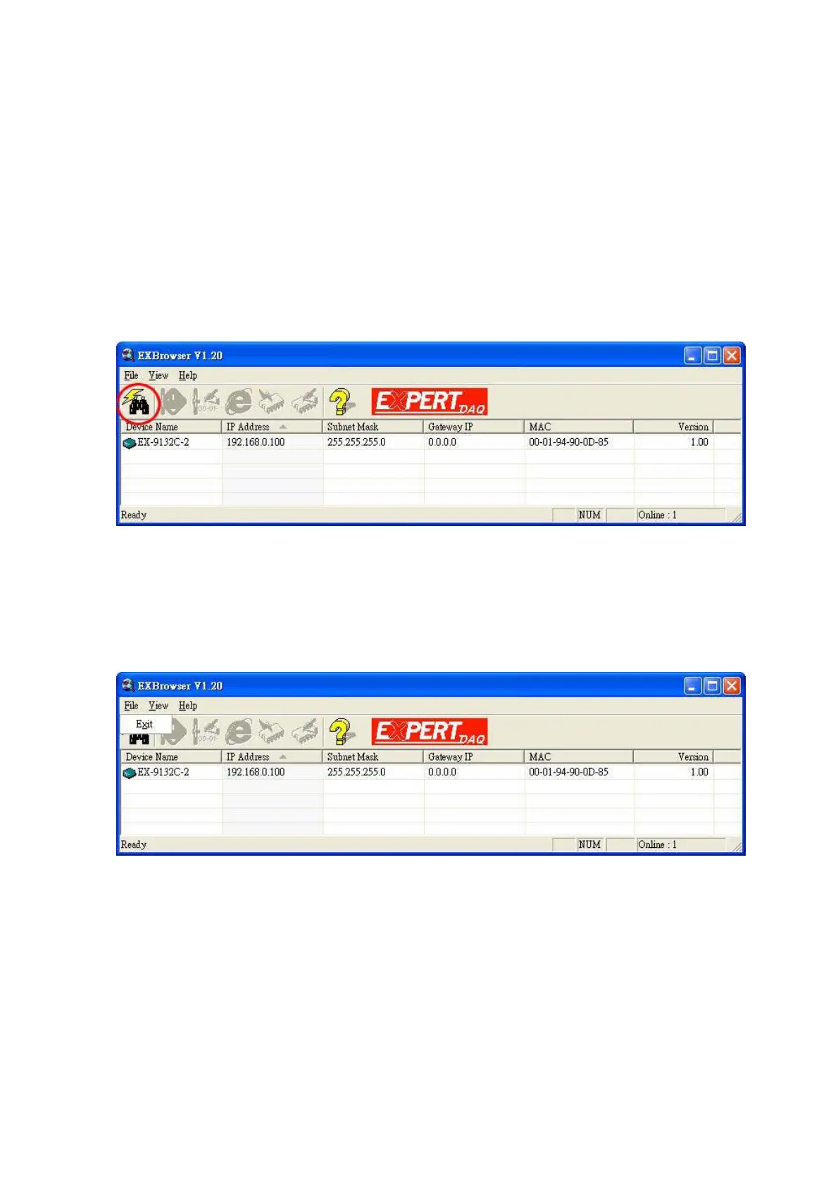 To click the device on the existing devices list in the EXBrowser table and then the