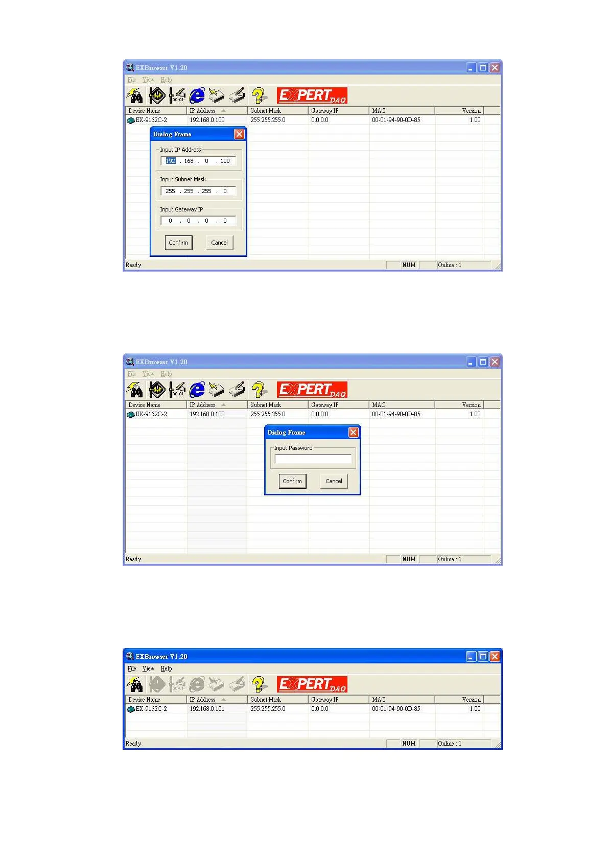 When you press “Confirm” button, the IP address will be refreshed in 2~3 seconds.