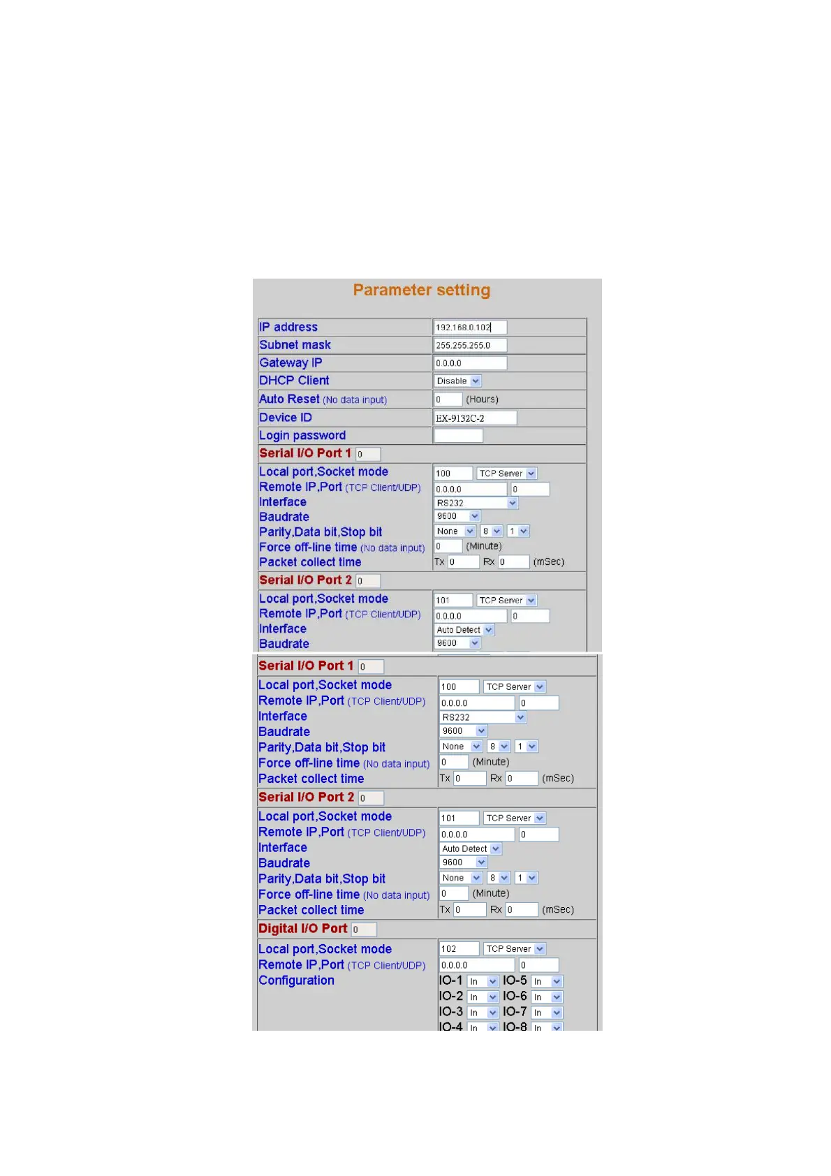 button in the “Login Setting” page, then the “Parameter Setting” page will be