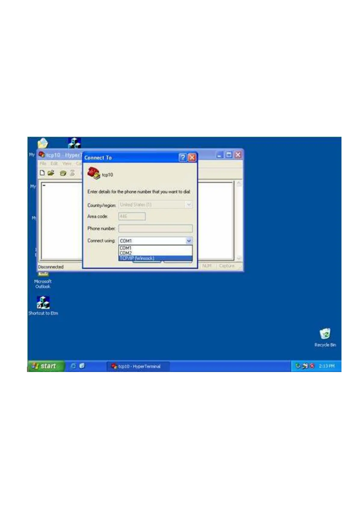 other COM port instead of “TCP/IP (Winsock)”). Set the COM port Properties to be