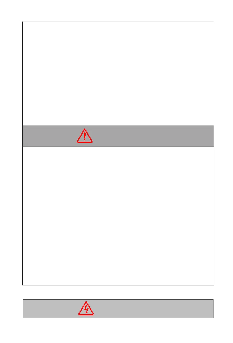 5. Never connect the input power line to terminals U, V, W.