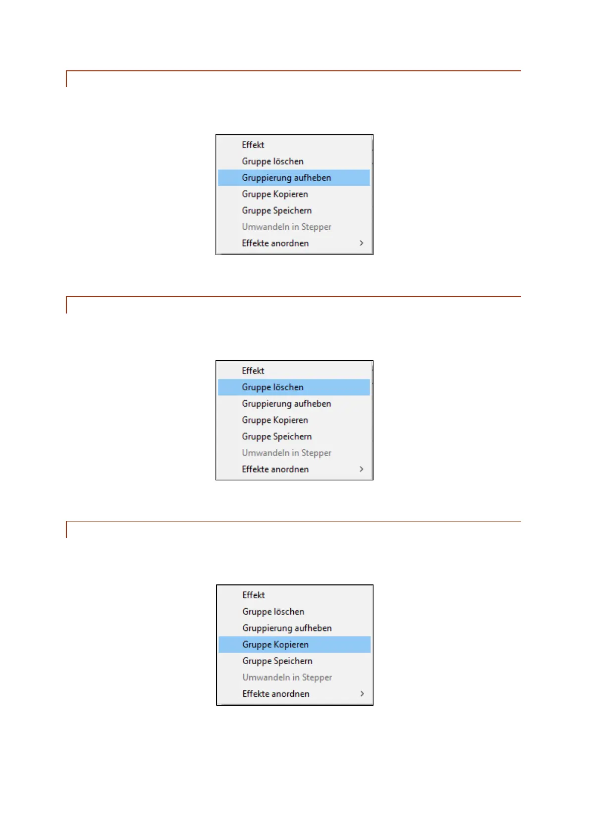 To delete a group, right click one of the ignitions of the group, or click into the group field of the cue.
