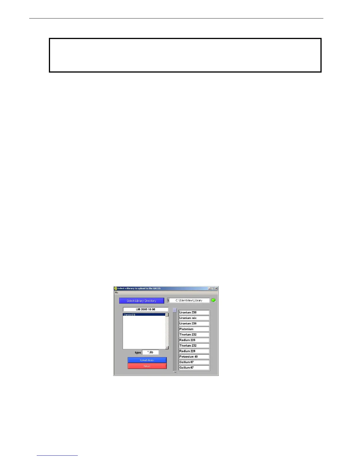 The installed LabView software comes with a standard isotope library. You can load this library or other