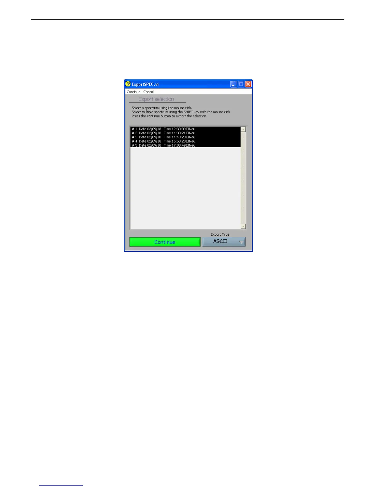 to select multiple spectra. Note that the date and time of when the spectra was stored is
