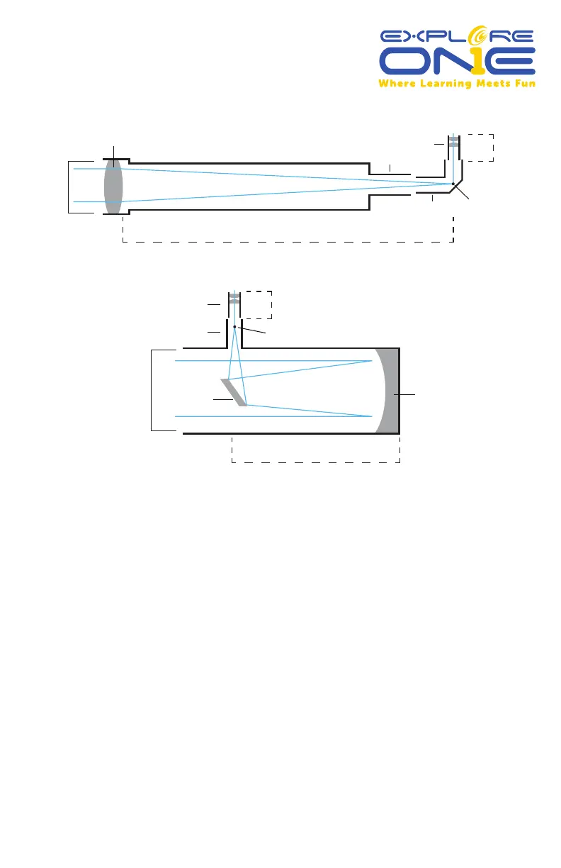 reflecting telescope. Light from the primary mirror is reflected back up the tube to the secondary
