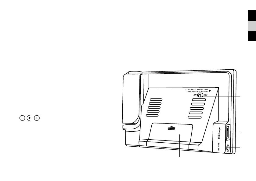 9. Batteriefach. Zum Öffnen nach unten schieben.