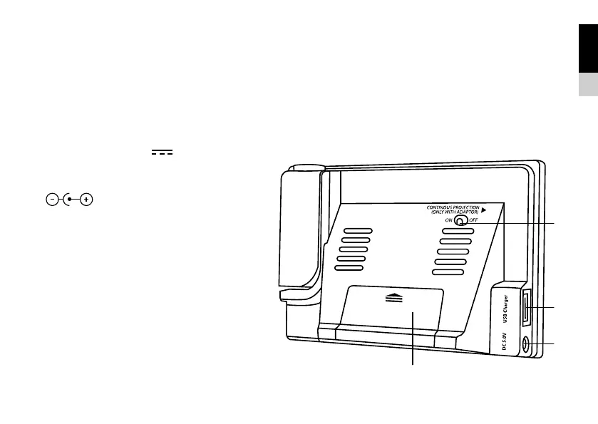 9. Battery compartment. Slide down to open.