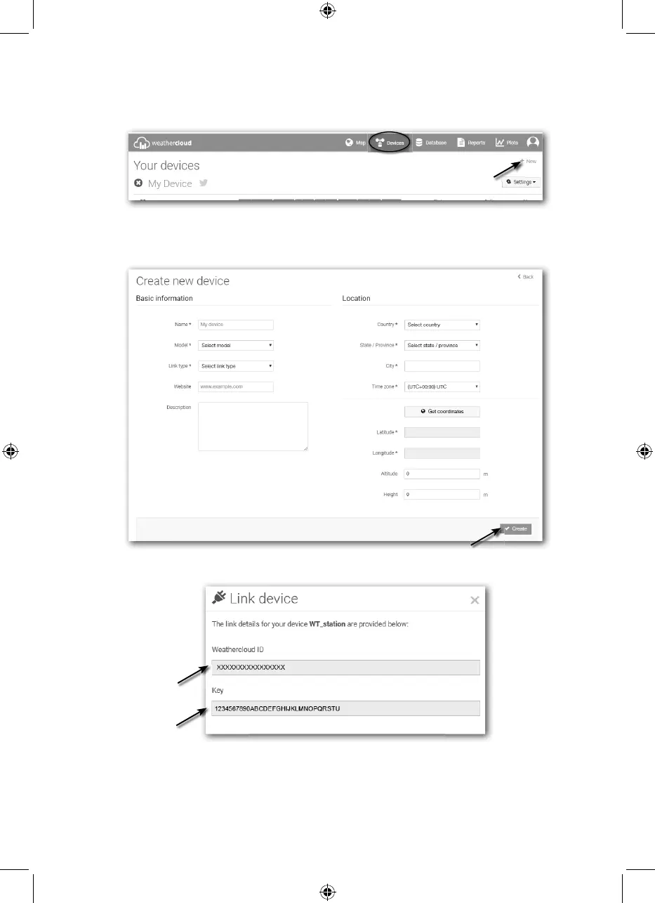 2. Sign in weathercloud and then you will go the "Devices" page, click "+ New" to create new