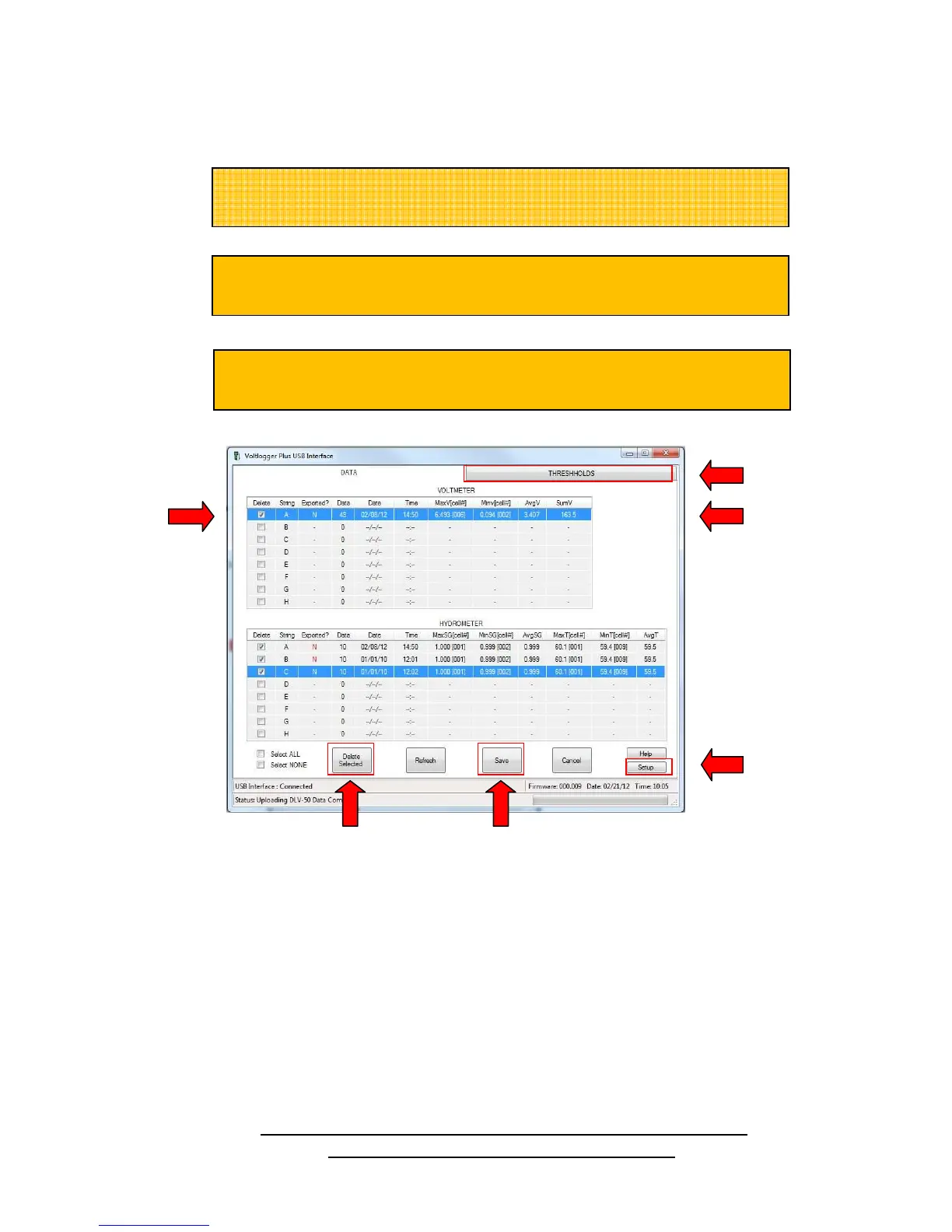 (B) Click “Thresholds” tab to edit/remove any thresholds (voltage, SG & temp.) for any string.