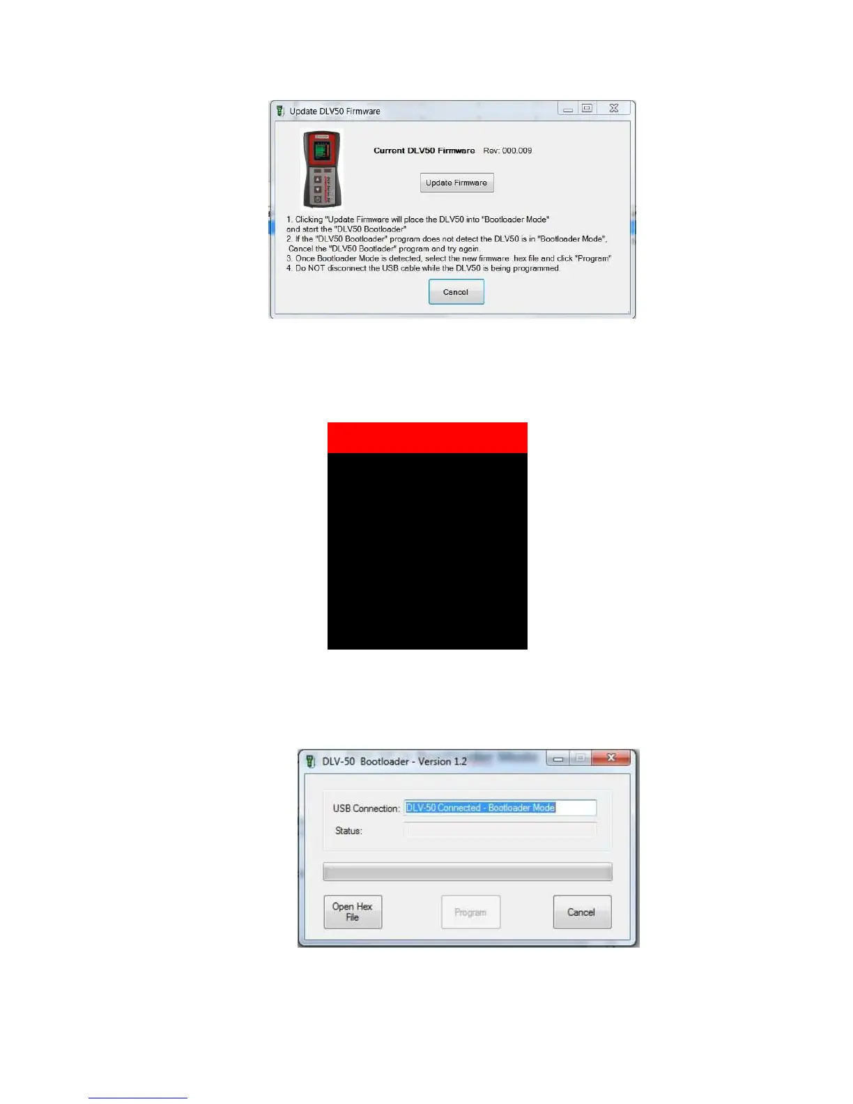 (iii) Click “Update Firmware” to place DLV50 into Bootloader Mode and start the DLV50 Bootloader