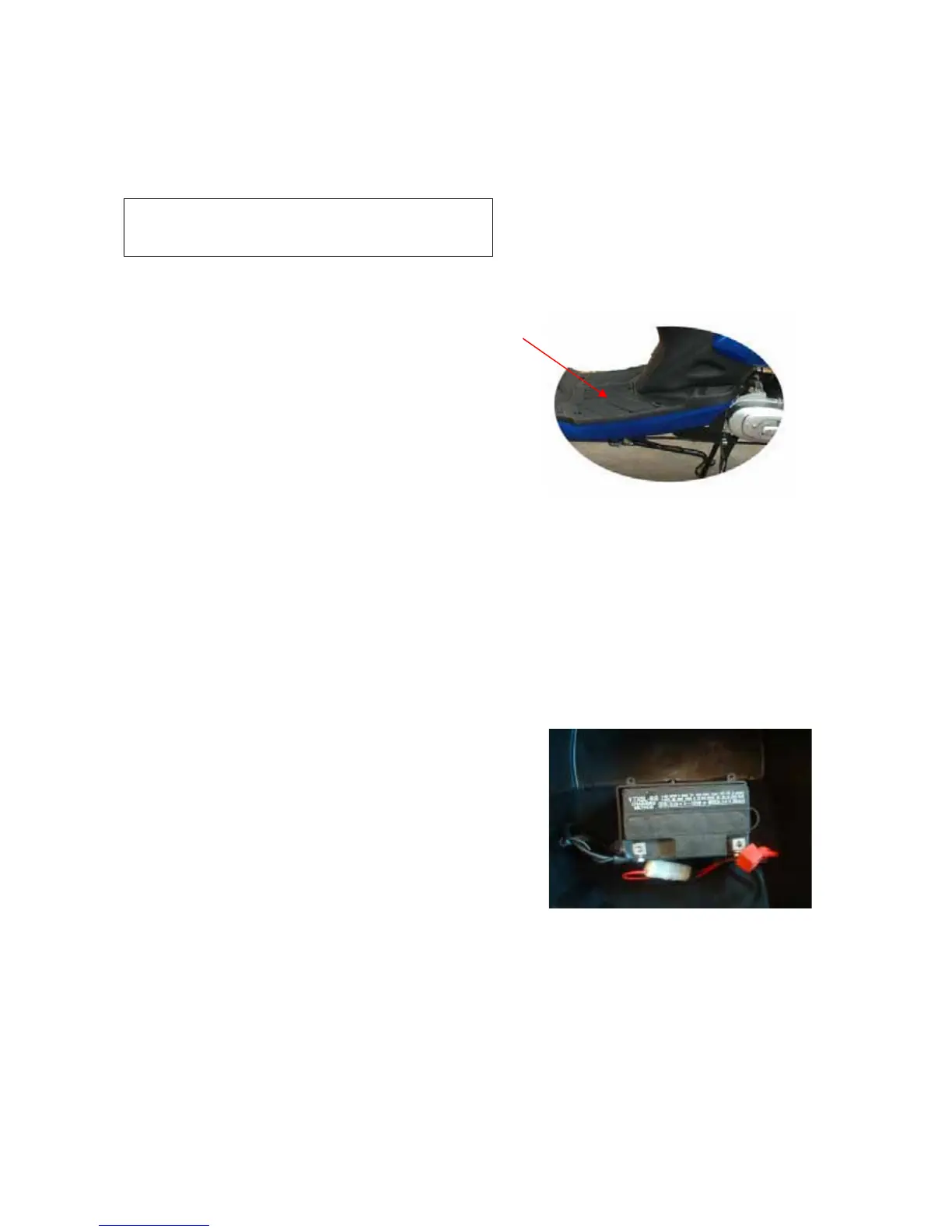 ႒ Uncover seat, and then remove the battery box cap in the