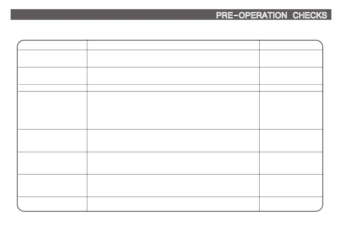 Pre-operation check list