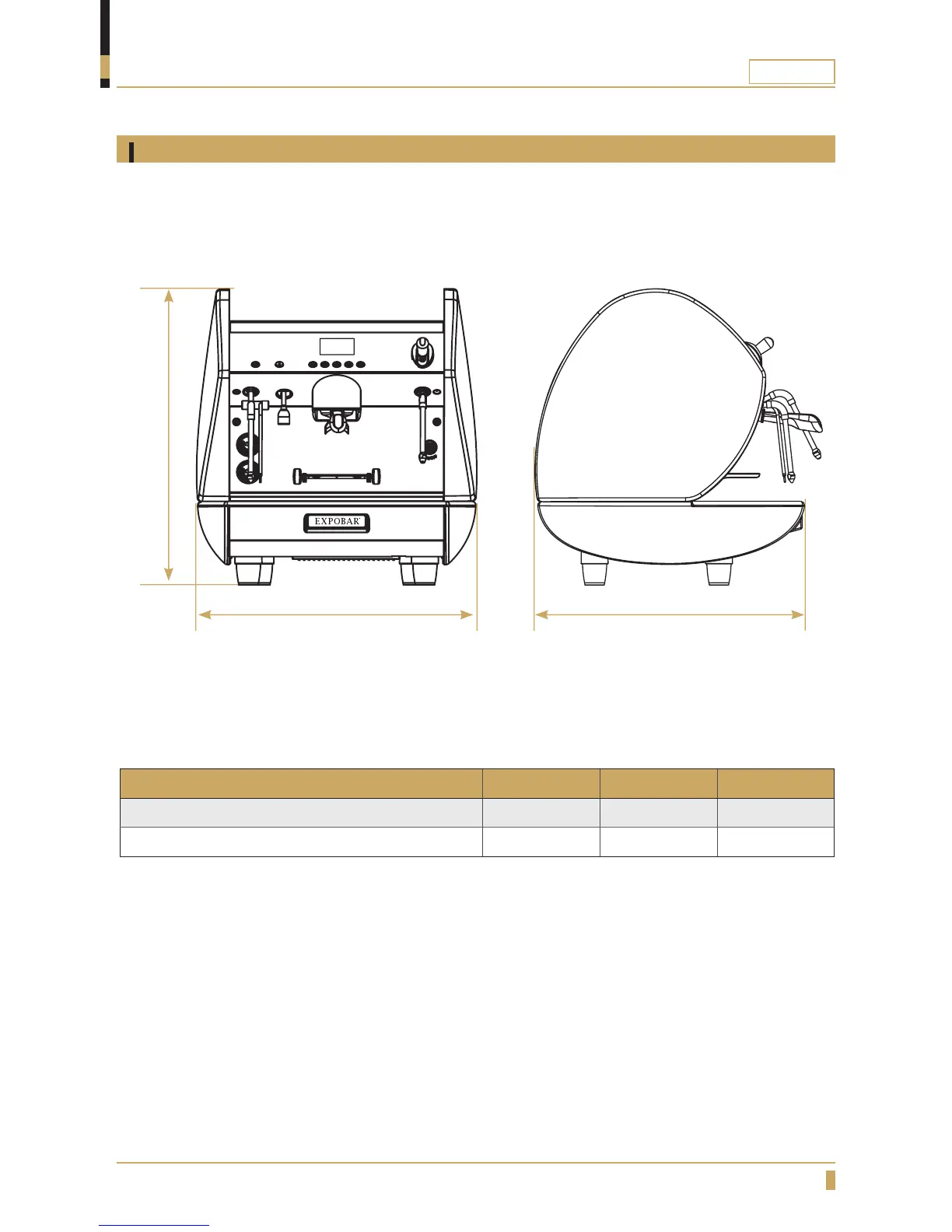 Expobar CARAT 1GR - Carat 1 GR; Dimension Sketch
