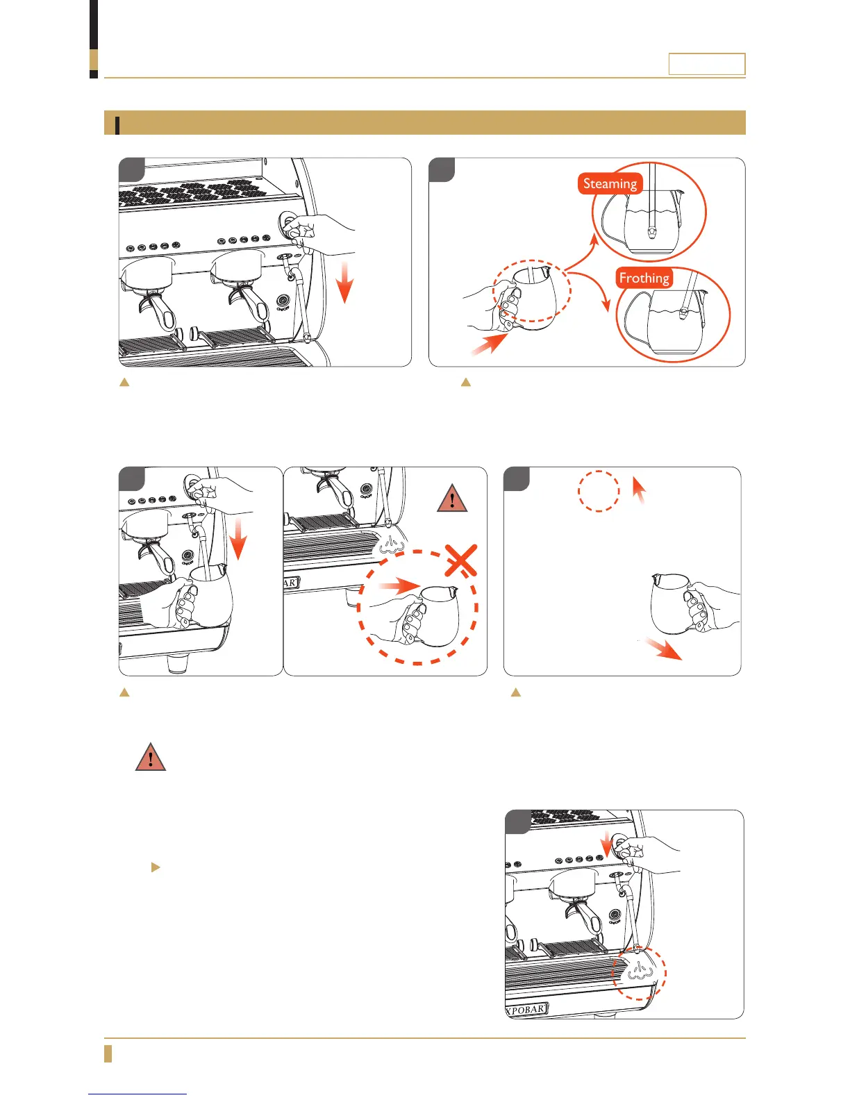the milk. Do not remove the milk pitcher while steaming.