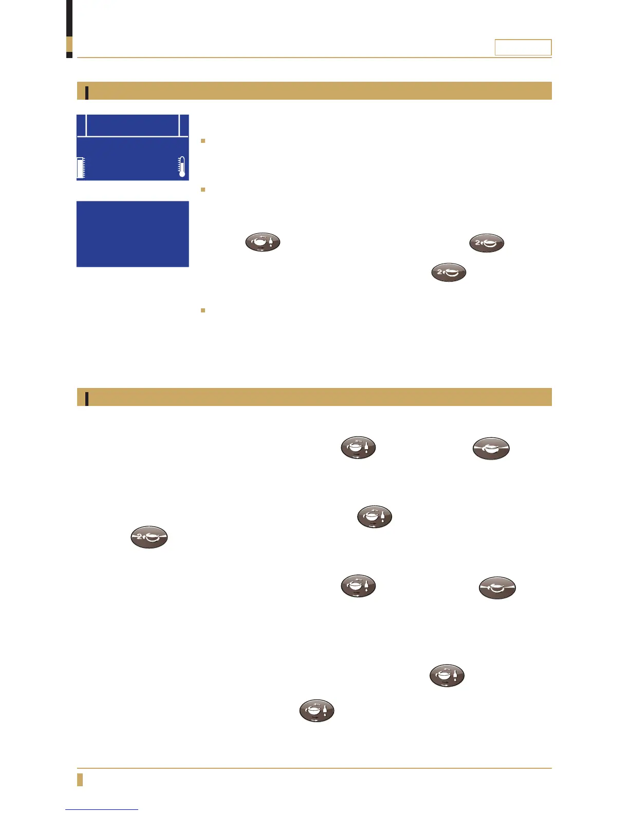 With the machine in ON status, press the Continuous and 1 Long Espresso buttons