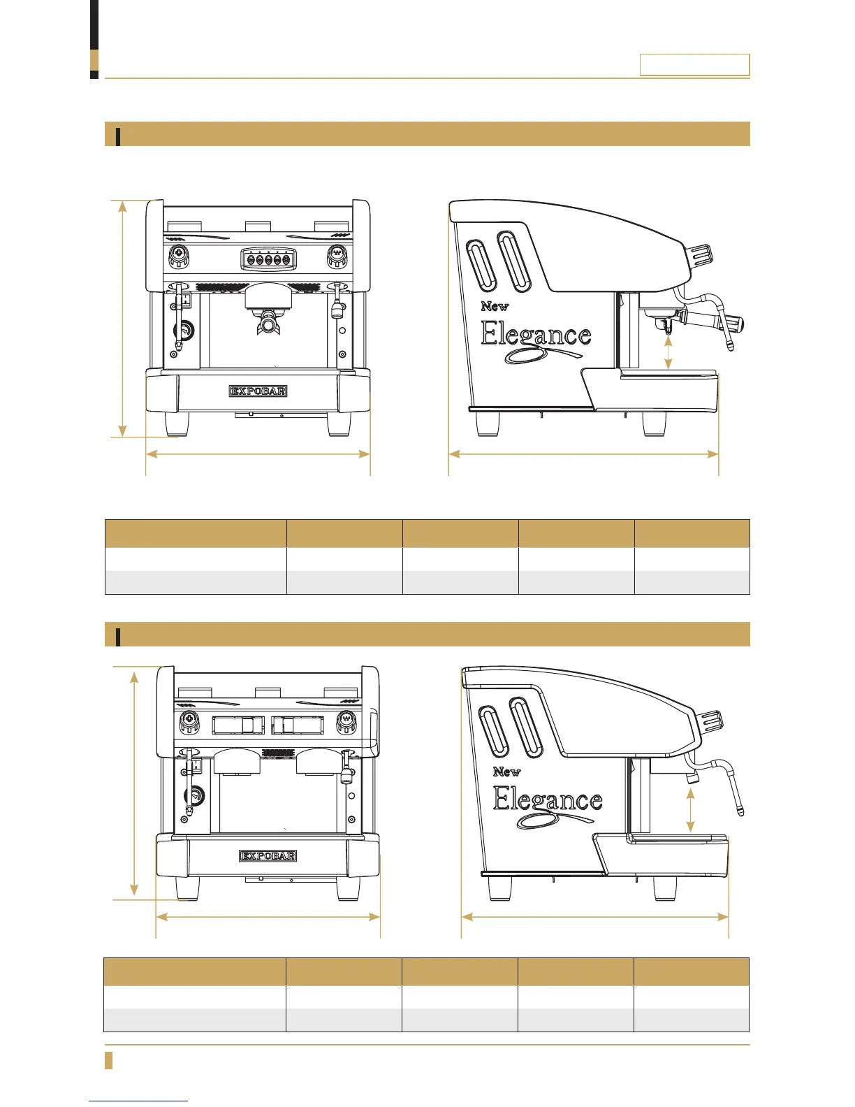 Expobar New Elegance 1GR - Dimension Sketches; New Elegance MINI IGR Dimensions
