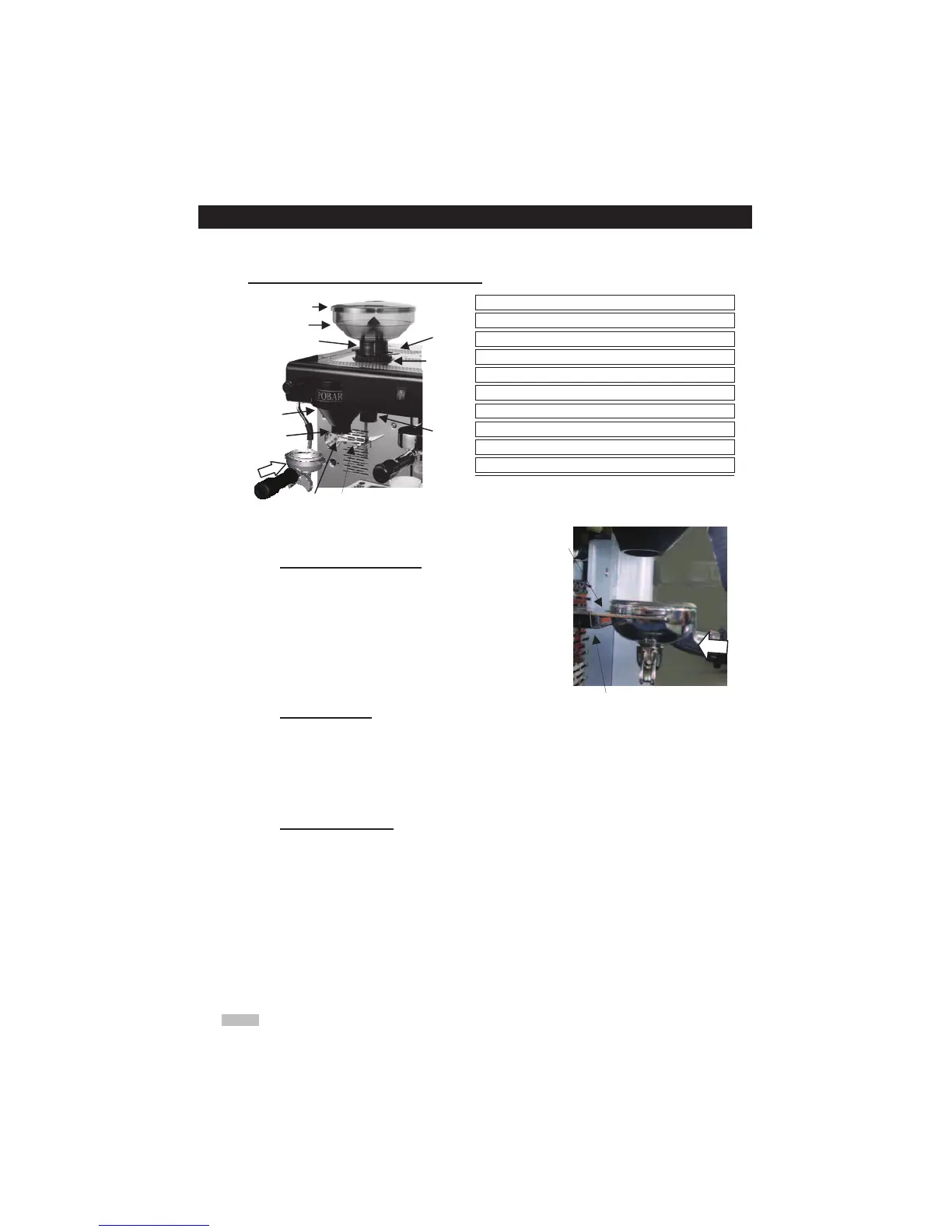 x Drücken Sie den Mahlen Abzug (8) mit them Siebträger. Solange Sie drücken, gemahlenen Caffee