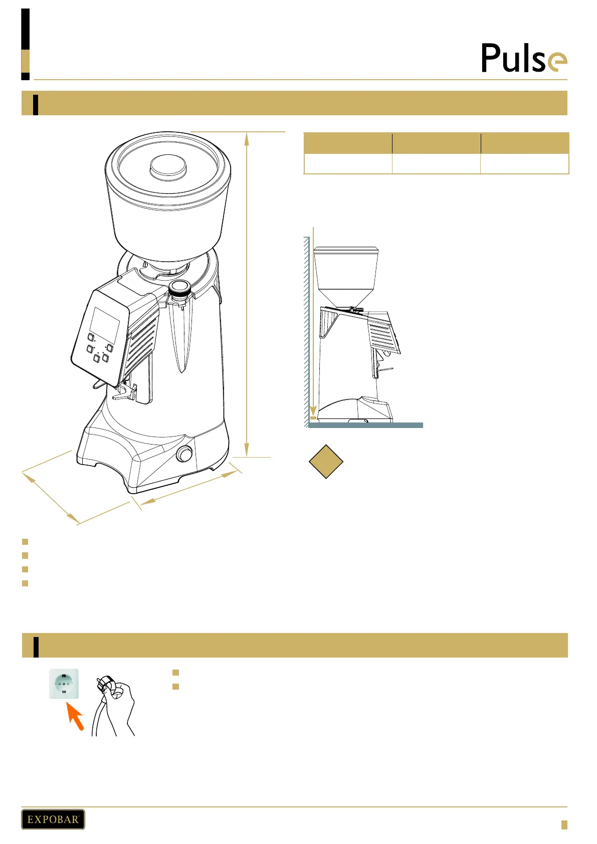 The minimum dimensions for the place of the machine must be 230 mm wide x 270 mm depth x 600 mm high.