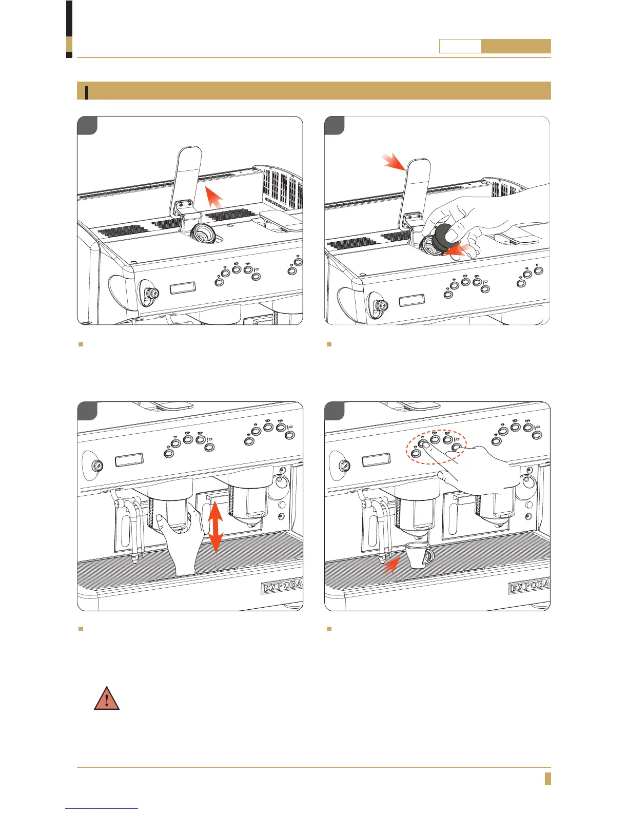 Never open the capsule group whilst the machine is dispensing a drink, as the pressurized