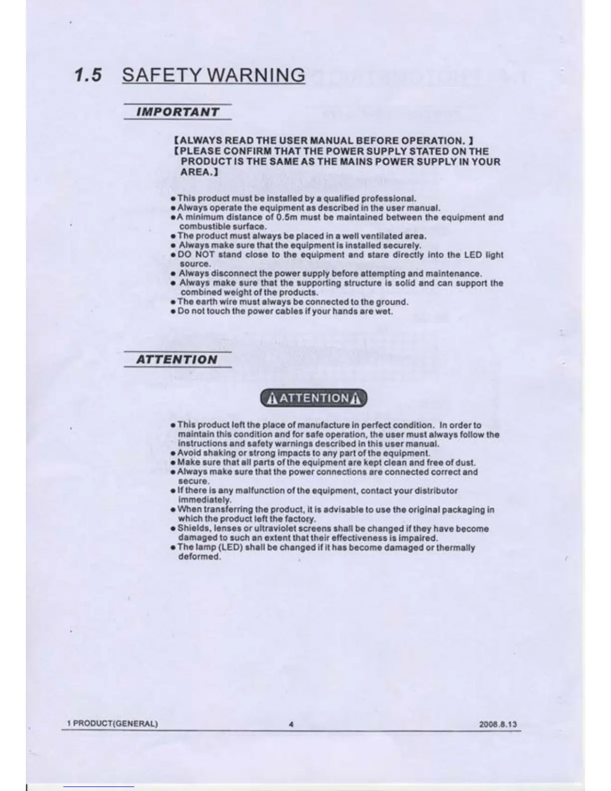 safe operation, the user must always fotlow
