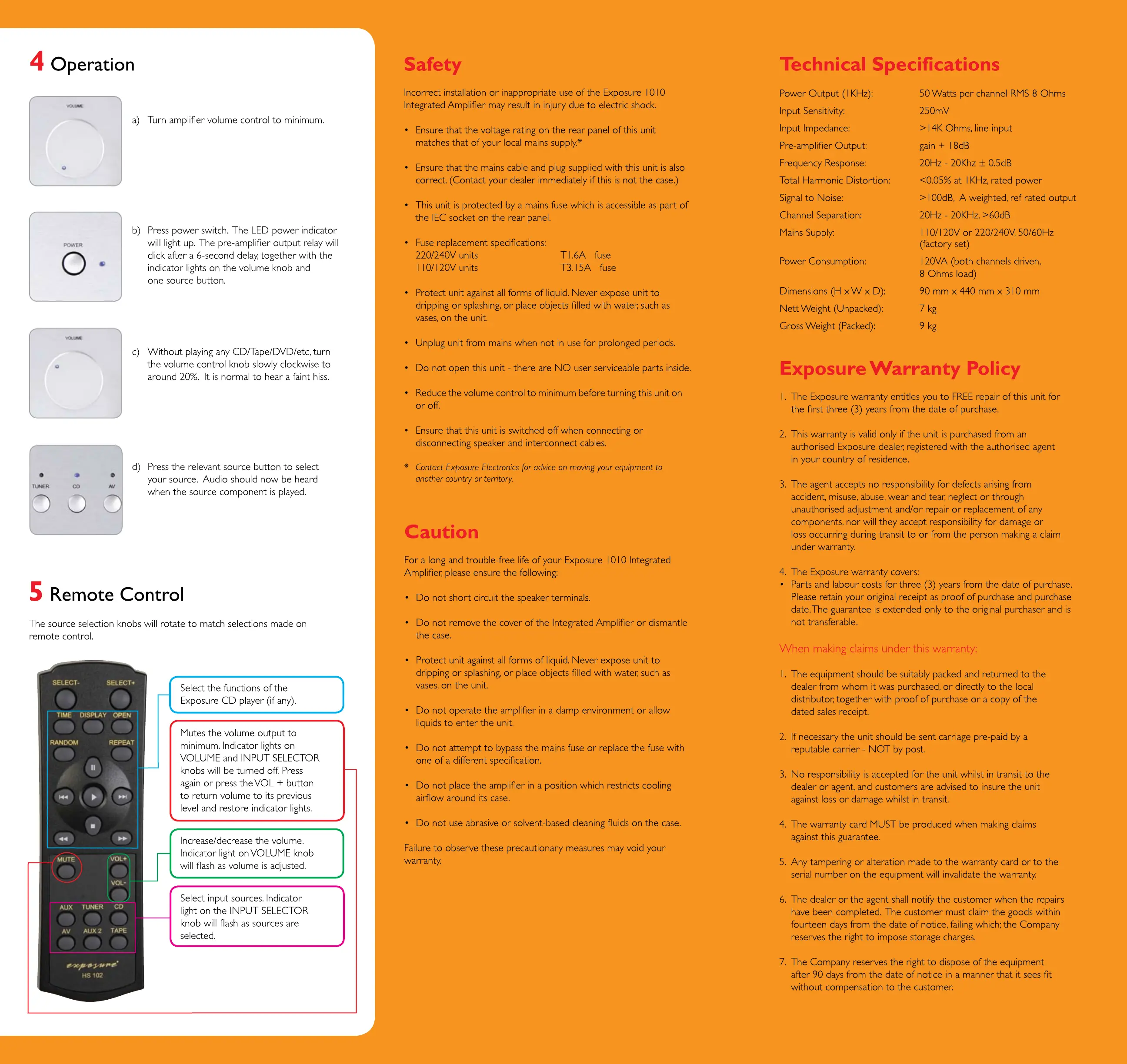 Exposure 1010 - Operation; Basic Operation Steps; Remote Control Functions; Safety and Precautions