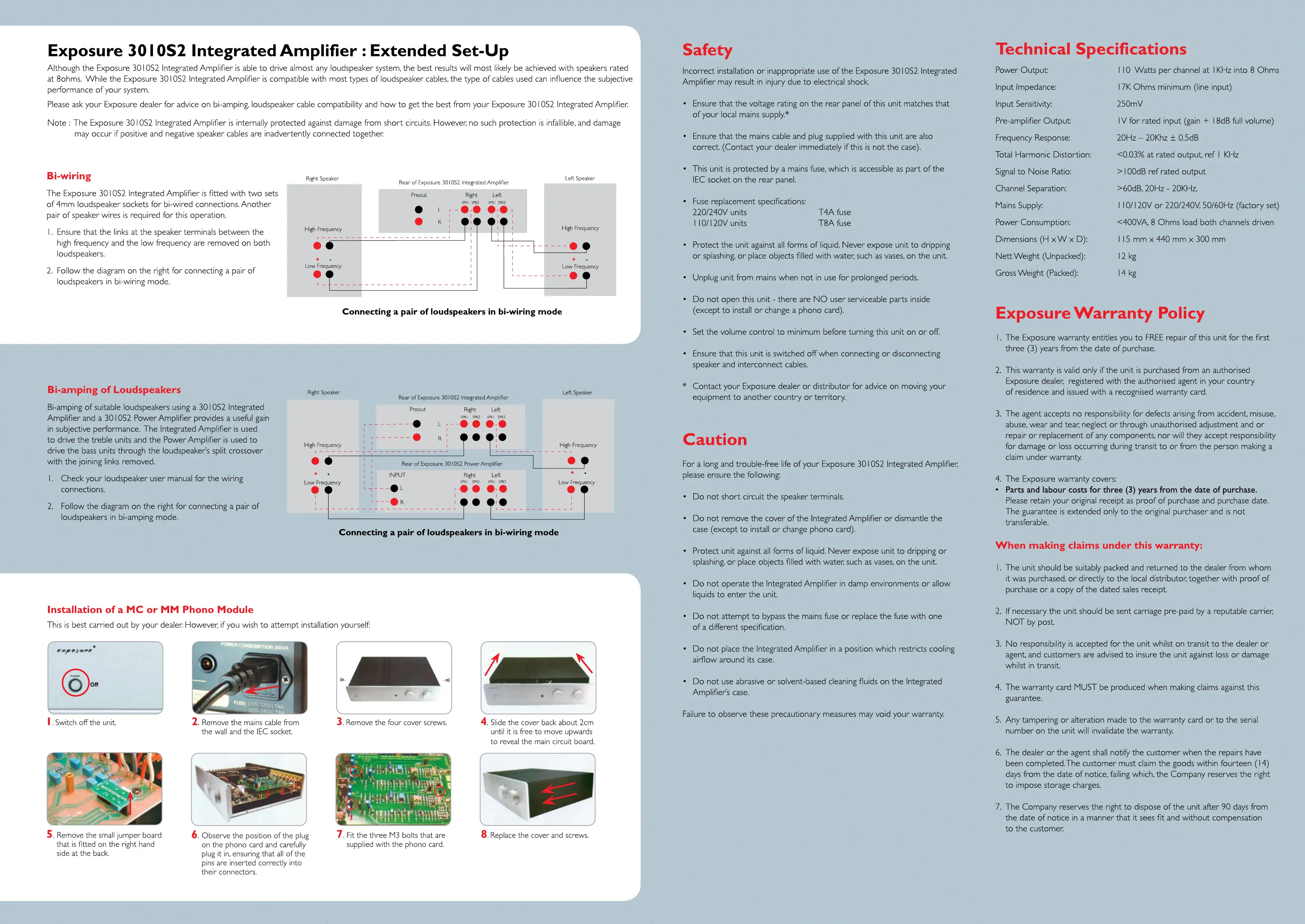 Exposure 3010S2 - Advanced Setup and Safety; Safety Precautions; Extended Bi-wiring Guide; Extended Bi-amping Guide
