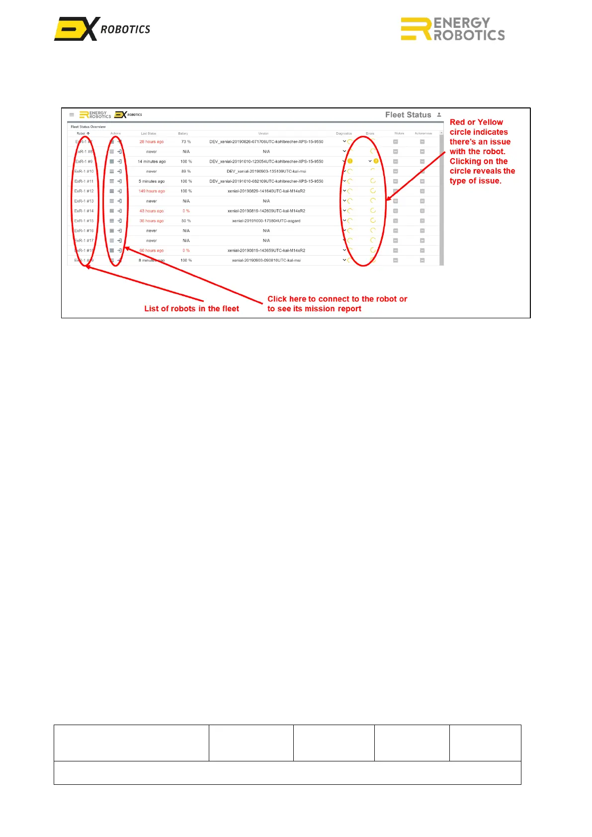 Once a user has connected to a robot, most of the display information is intuitive: