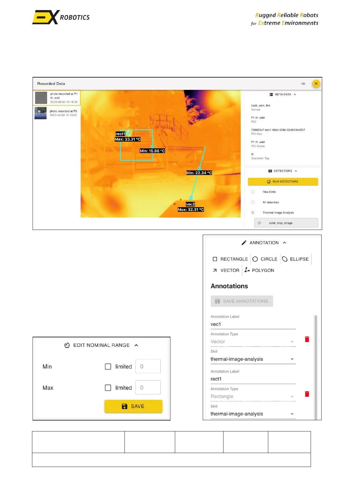 The user can annotate a thermal image and display the temperature limits of a specific area as