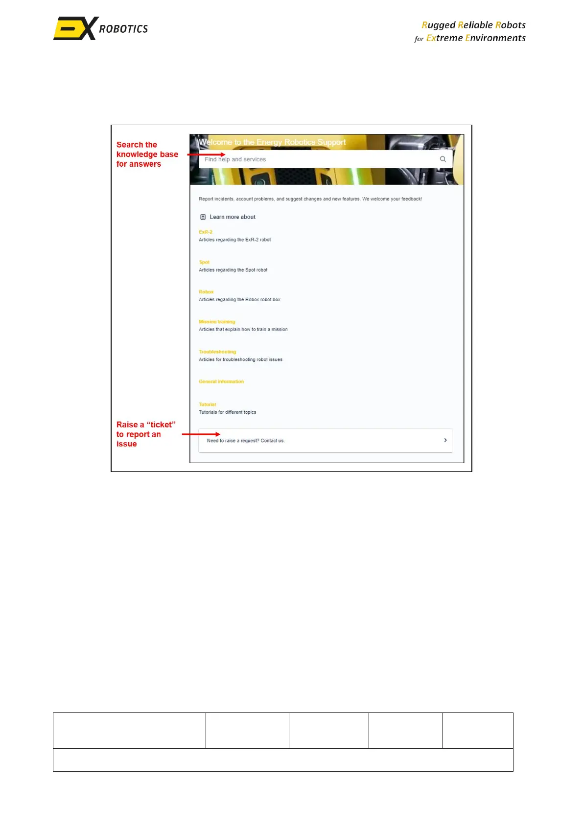 arise. The ExRobotics account manager will handle any concerns or issues.