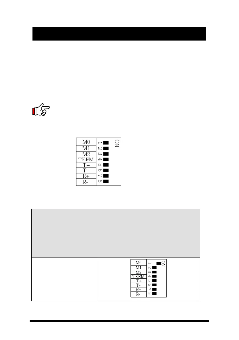 The DIP switch has 8 pins, the first 3 pins (M0, M1, M2) are for mode settings