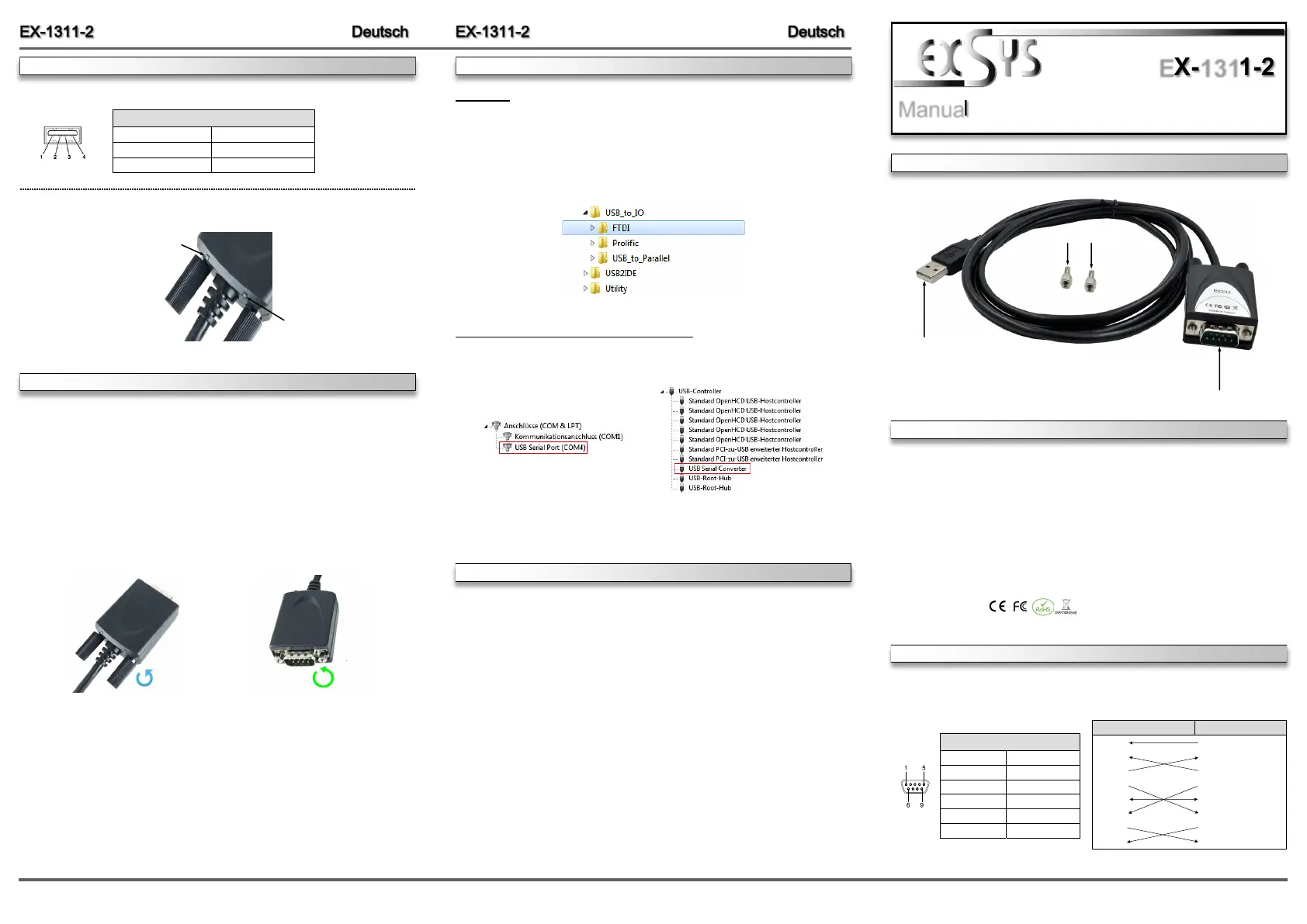 EX-1311-2 is equipped with a USB 2.0 A-Connector for connection to the PC and a RS-232