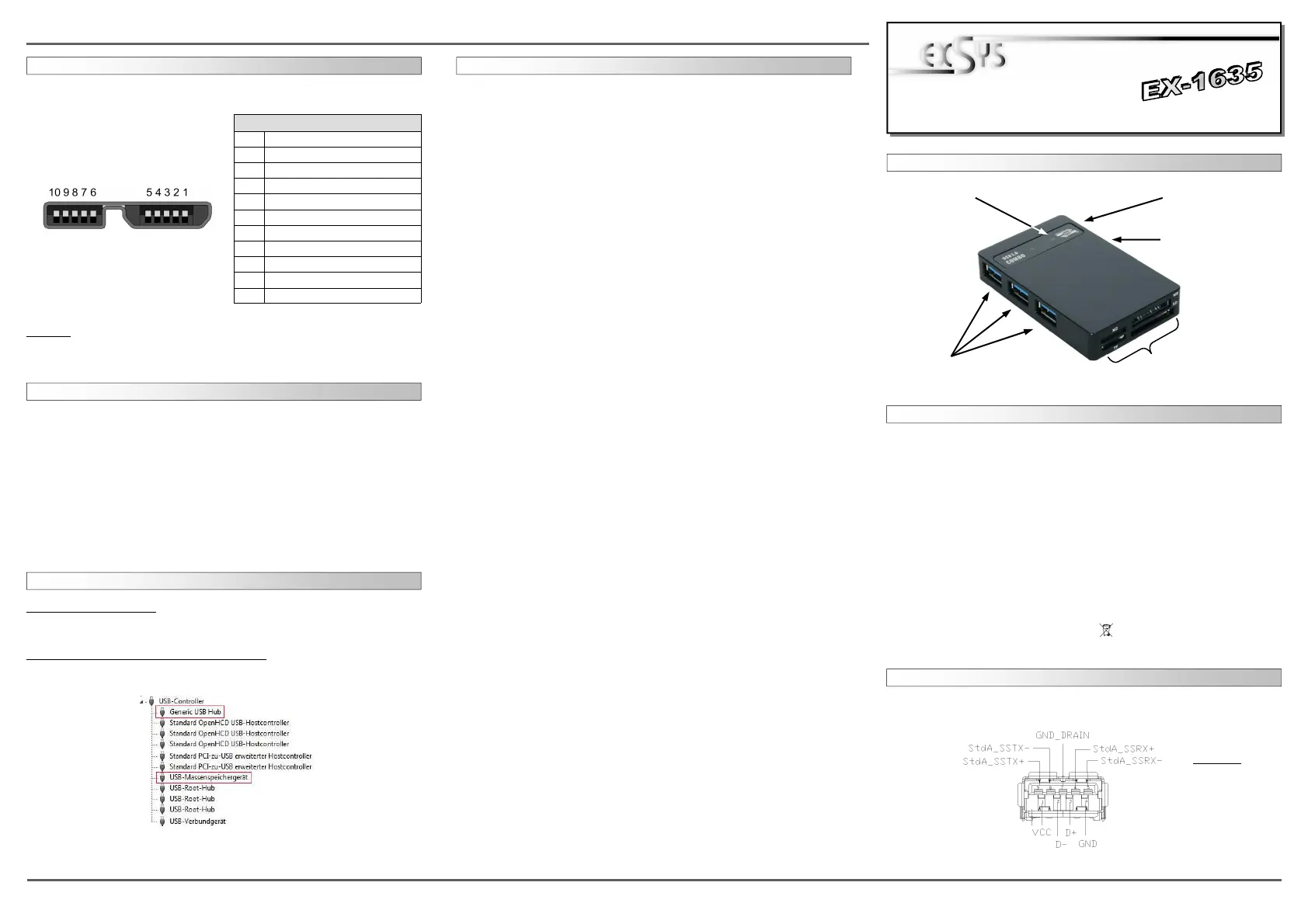 The EX-1635 is a plug & play high-speed USB 3.0 card reader and USB hub. The