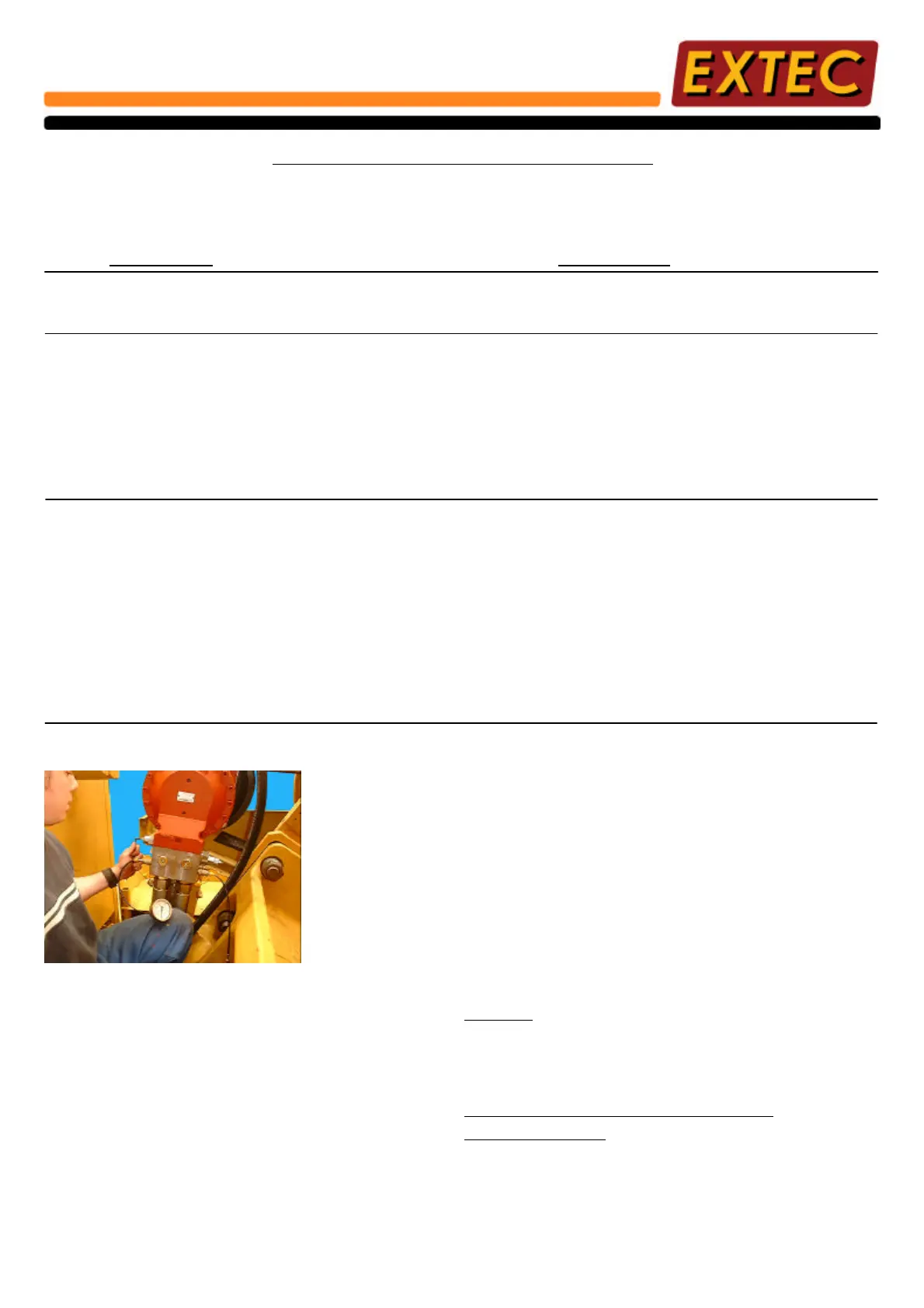 Check pressure at motor control block using a 0 - 400 bar pressure