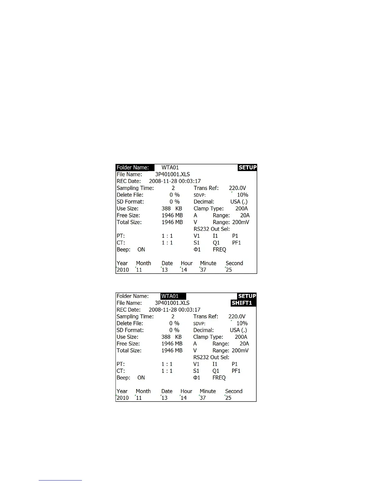 parameter’s setting. The SHIFT key is then used to return to Setup Mode editing where the arrow