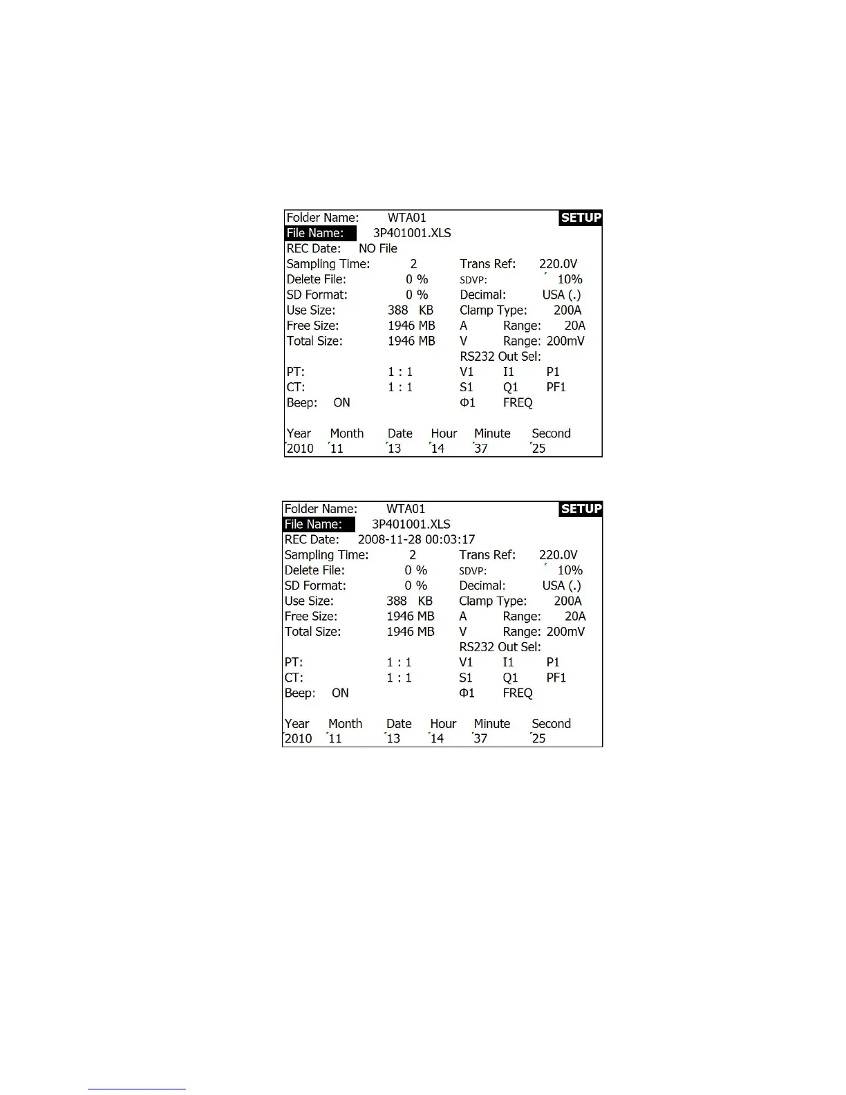 a. 1P201001: 1P2 is one phase by two wires, 01 is the folder number, and 001 is the file number