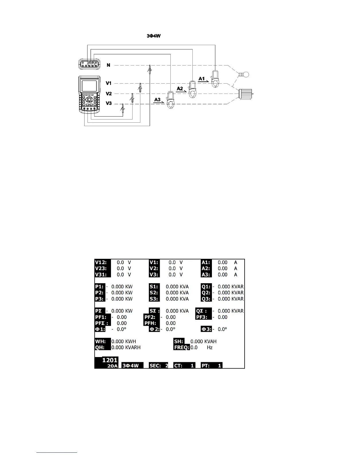 then press ‘1Φ 3Φ’ (item 3-22) to select the 3Φ 4W system, the selected name of the