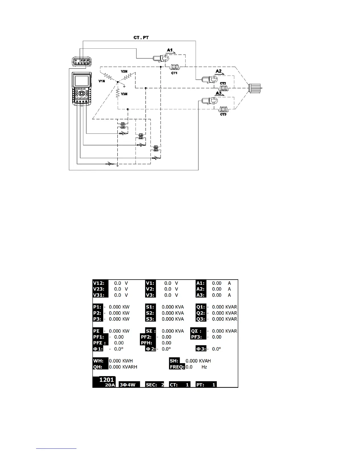 then press the ‘1Φ 3Φ’ key (item 3-22) to select the 3Φ 4W system, the selected name of
