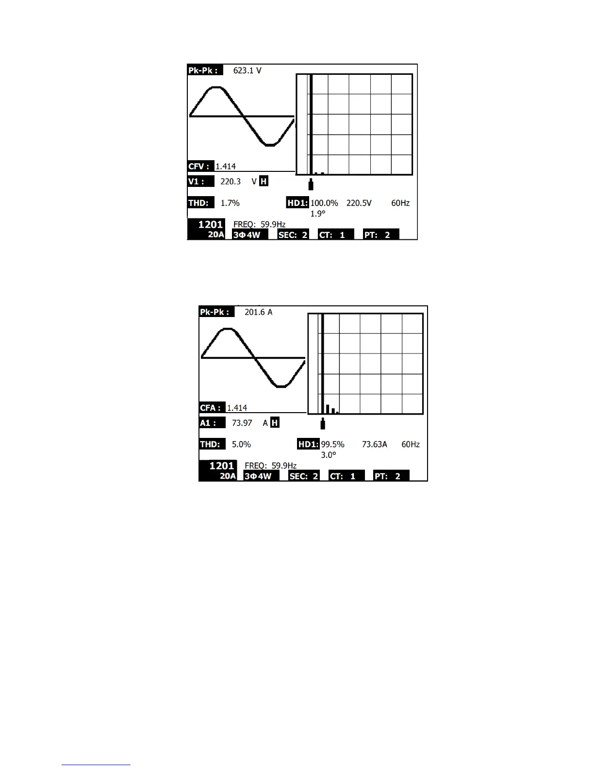 Harmonics - Screen 4– Amps phase 1 – High range (AH)