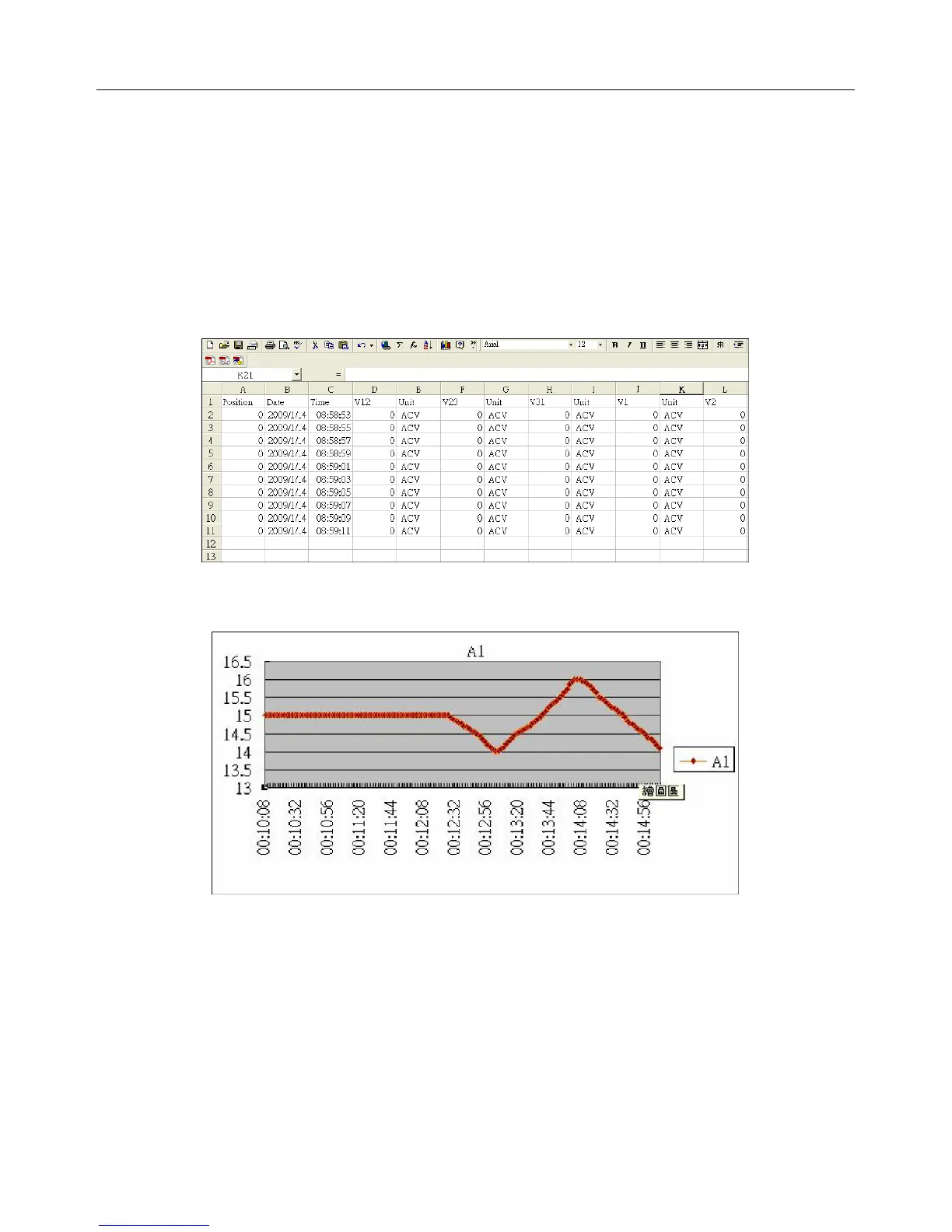 3. Power the computer and run spreadsheet software. Download the stored data file from the