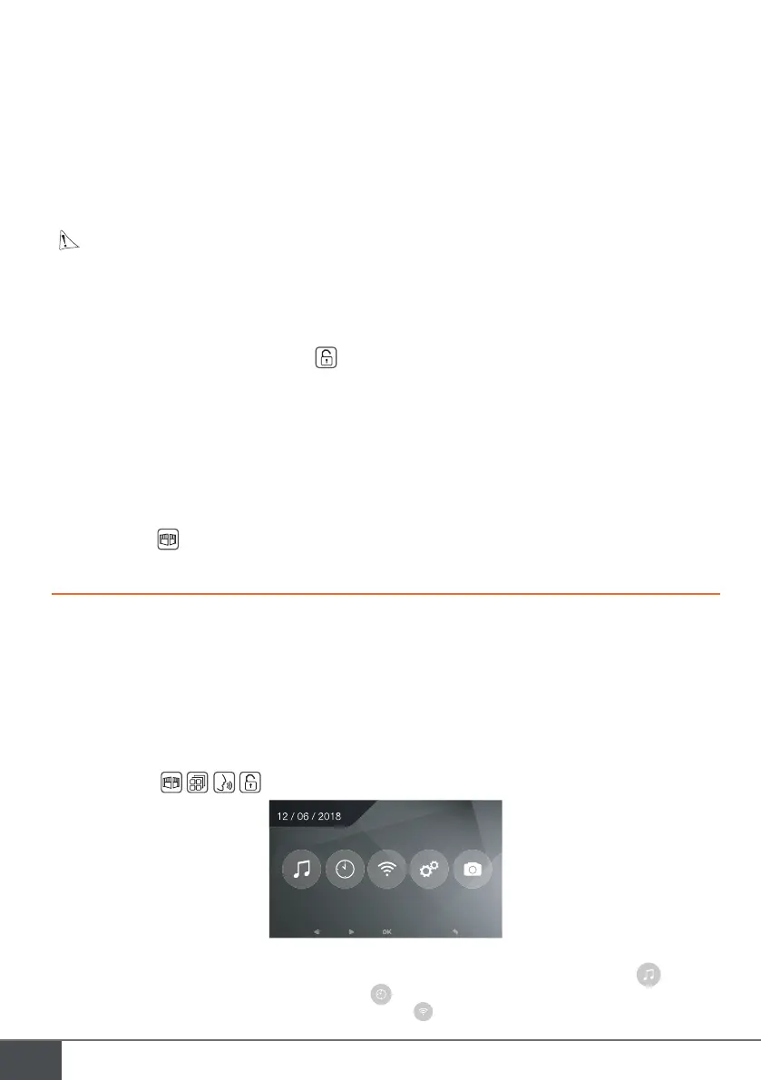 De videofoon beschikt over 5 touchscreenknoppen waarmee u: uw instellingen kunt afstellen, kunt navigeren in