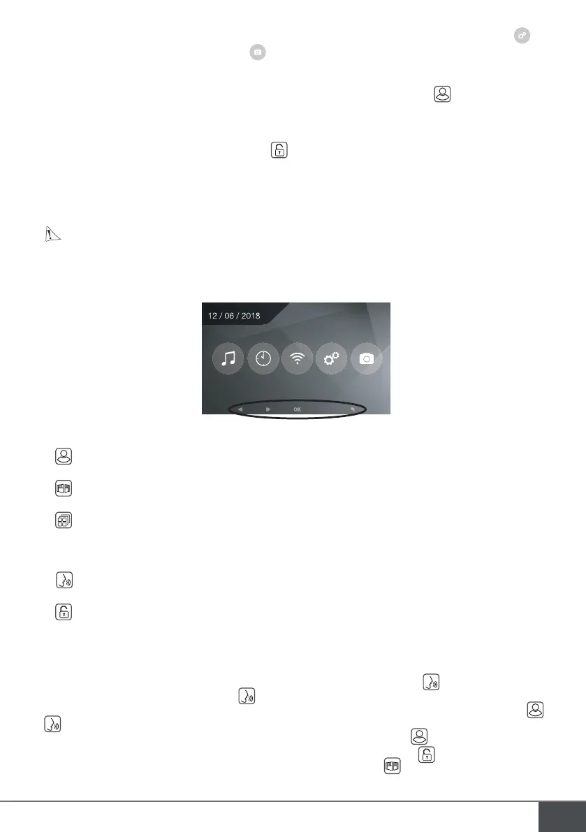 • Una llamada desde el botón de la placa externa activa una señal acústica y que se encienda el monitor durante