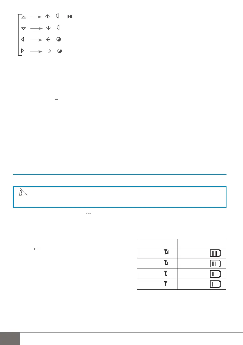 > Permet de naviguer à l’intérieur du menu, de régler le volume sonore ainsi que la luminosité et de passer du