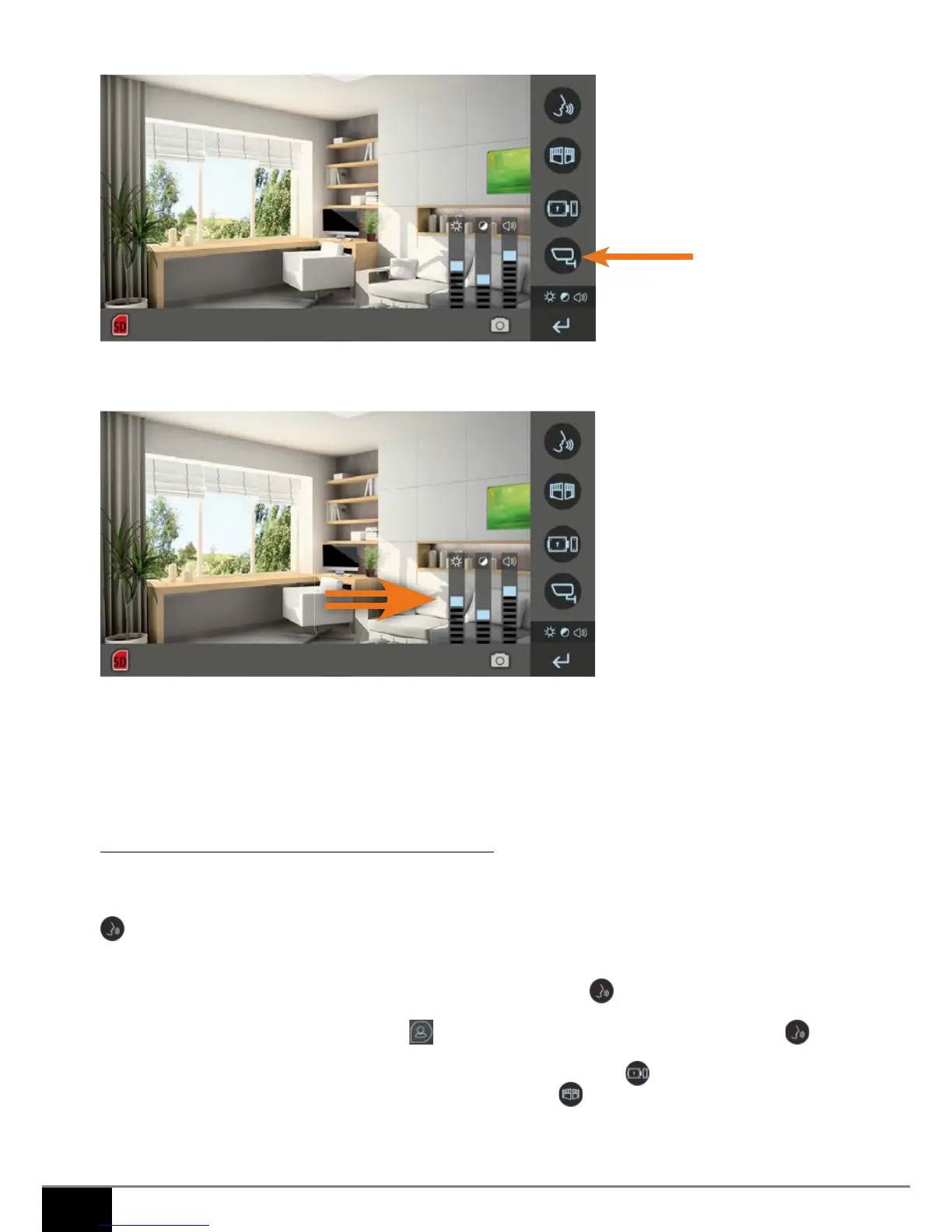 5. Icone de provenance des images af chées, appuyer pour basculer de la platine à la caméra et vice versa