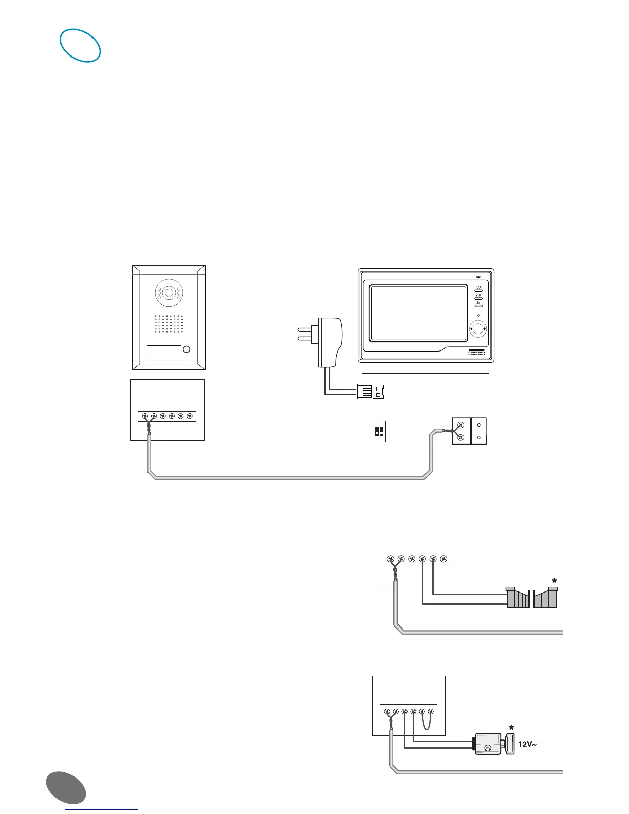 2. Para ligar a câmara, são necessários unicamente 2 fios para todas as funções: campainha, imagem vídeo, inter-