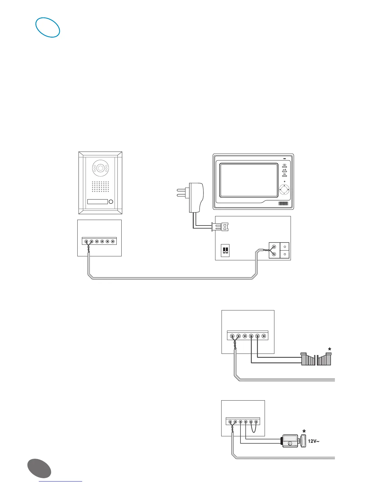 2. To connect the video camera, only 2 wires are needed for all the functions: chime, video image, intercom and