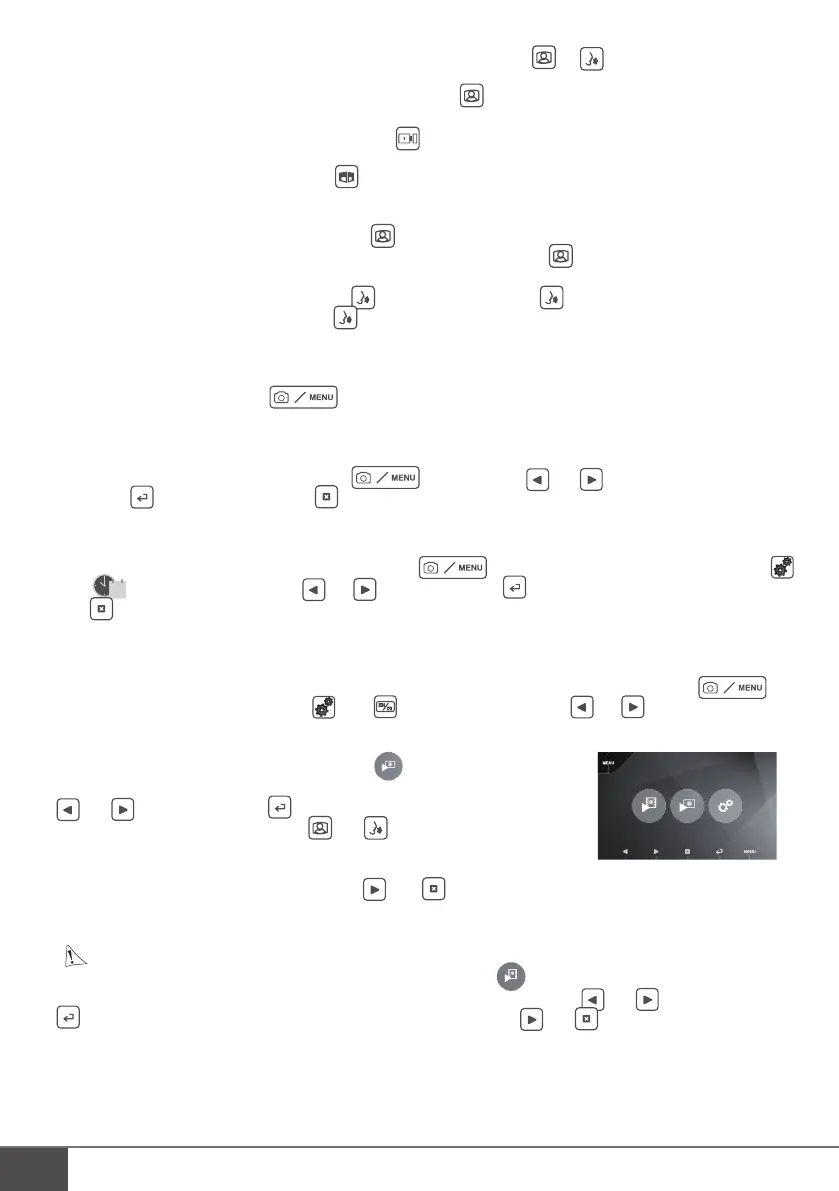 • Settings in visitor recording (video or photo) mode: To access the appropriate menu, press the key